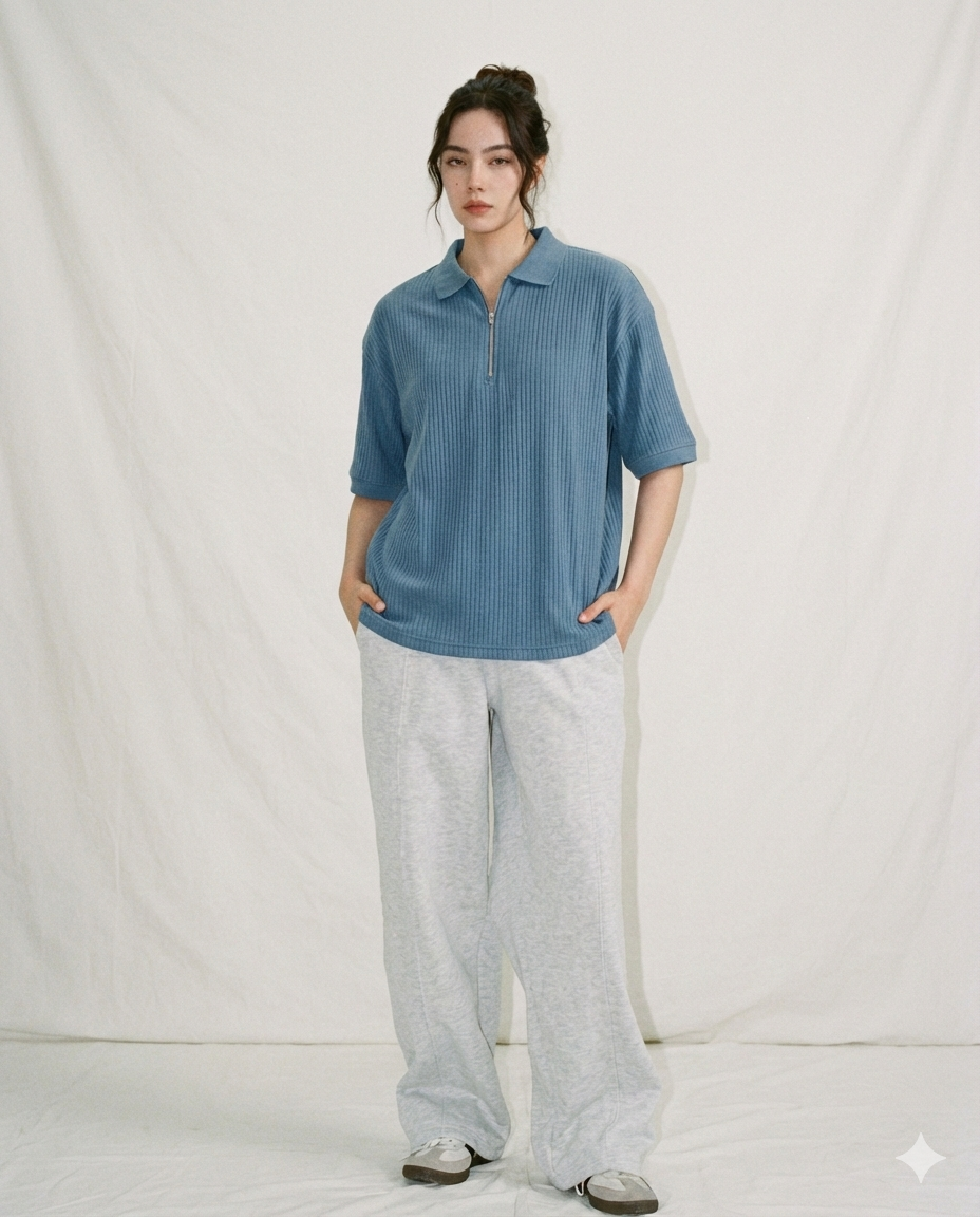 Elevated Texture. Effortless Sophistication. A modern icon of versatile dressing, The Sky Vertical-Rib Polo redefines the classic silhouette.